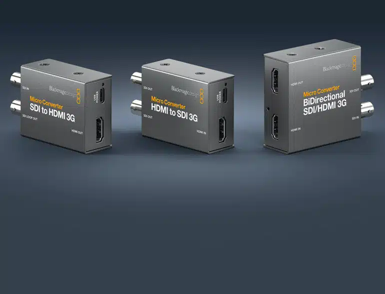 € 59,00 - € 145,00Prijsklasse: € 59,00 tot € 145,00De nieuwe Blackmagic Micro Converters zijn ongelooflijk kleine broadcast-videoconverters waarmee klanten verbinding kunnen maken tussen consumenten-HDMI en professionele SDI-apparatuur. Het robuuste en geminiaturiseerde ontwerp maakt ze klein genoeg om overal te gebruiken. Klanten krijgen professionele 3G-SDI- of 12G-SDI-verbindingen, afhankelijk van de modellen, zodat klanten kunnen werken met SD-, HD- en Ultra HD-formaten tot 2160p60. Micro converters gebruiken USB voor stroom, zodat ze rechtstreeks vanaf televisies of laptops kunnen worden gevoed. Klanten kunnen ze zelfs zonder voeding kopen. Alleen Blackmagic Micro Converters zijn voorzien van op maat gemaakte elektronica die voldoet aan de wereldwijde uitzendspecificaties en die in de toekomst kan worden bijgewerkt naar nieuwe normen.